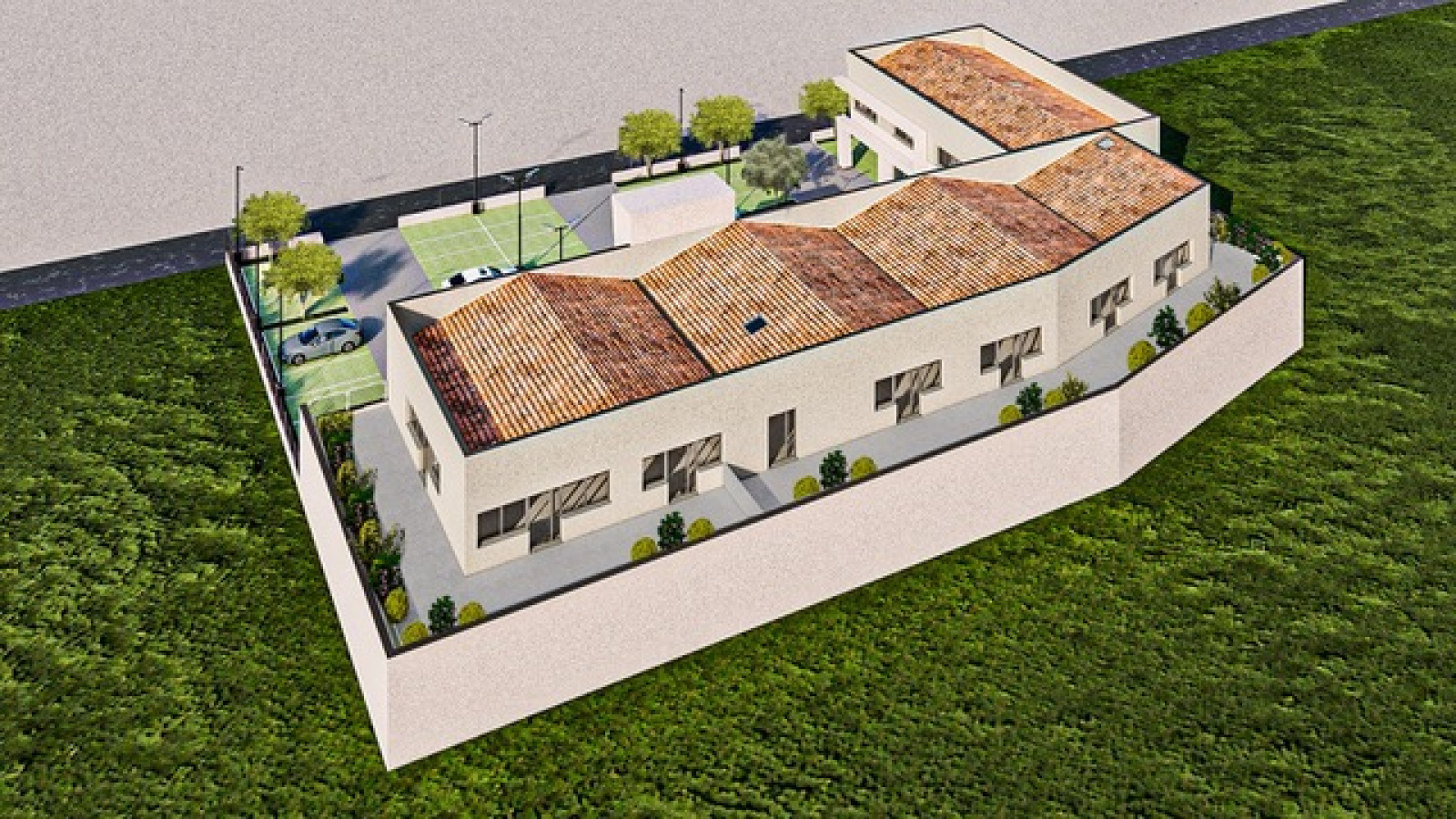 Tous les lots du 1er étage bénéficient de terrasses en coursive et sont livrés cloisonnés et sols finis au choix du preneur (parquet pvc ou moquette)